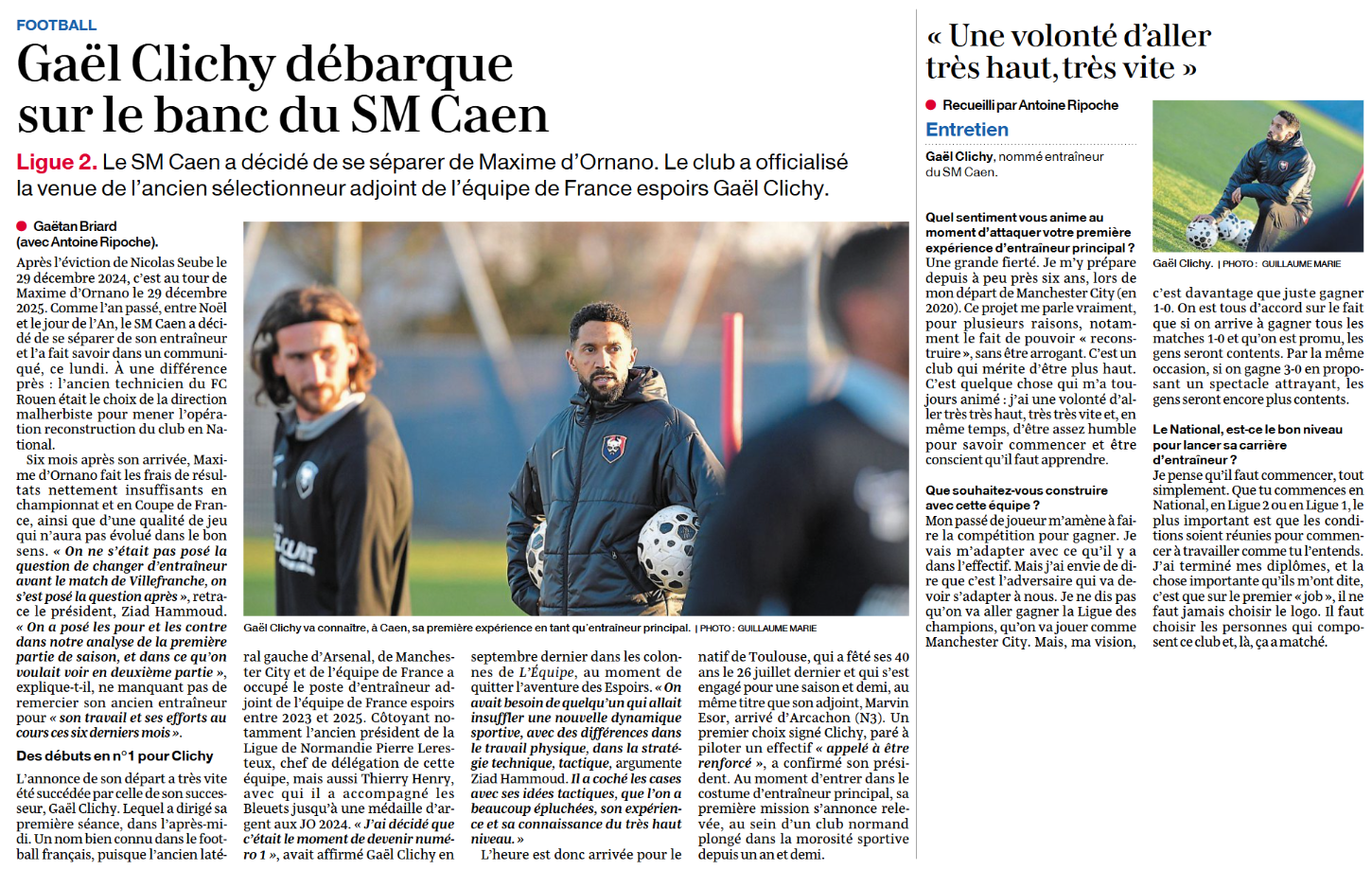 Après, c’est la première fois que Guy Clichy est entraîneur, donc, c’est surtout au club de bien l’accompagner là dessus…