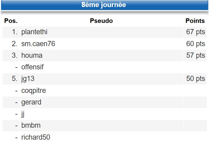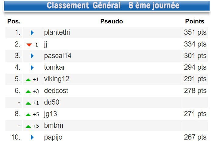 ![]() Félicitations à plantethi pour cette première place du classement général avec 351 pts.