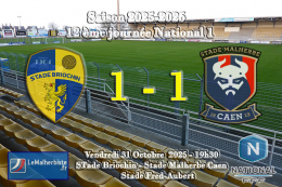 Le Stade Malherbe Caen concède le point du match nul (1-1) face à la lanterne rouge; le stade Briochin.