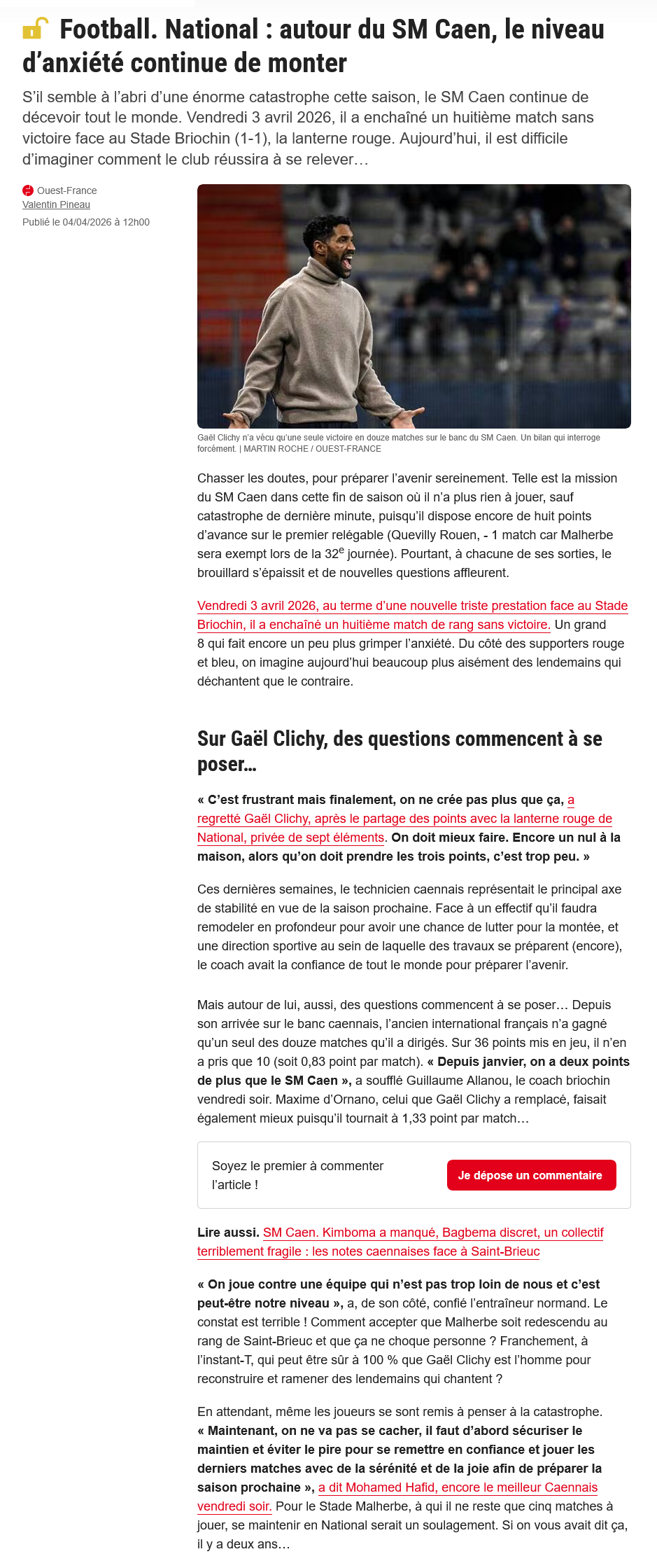 jouer contre avranches non c est impensable d en être arrivé là.reveille toi clichy c est encore n villa qui pert le ballon