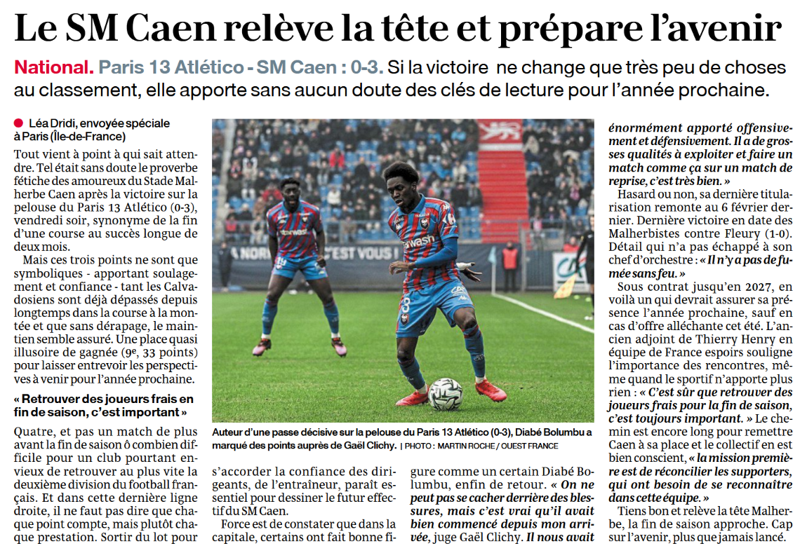 Par contre oui Bolumbu est pisté poug moi le smcaen a besoin de liquidité et je pense que cest possible quil soit transféré