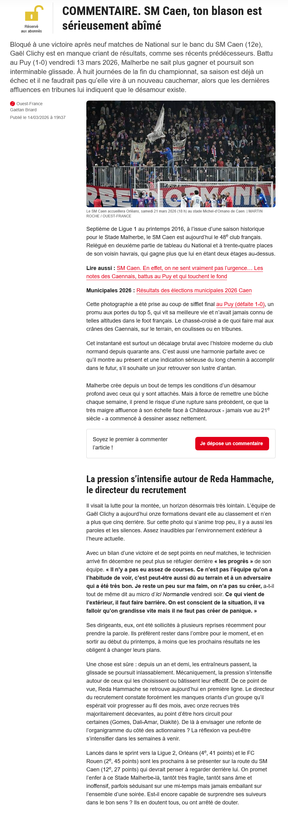 Ah que boujou.je crois que tous le monde est d accord,pour un départ d hammache.mais c est maintenant.faut préparer la prochaine saison,dès maintenant,avec un nouveau recruteur.kiki reveille toi